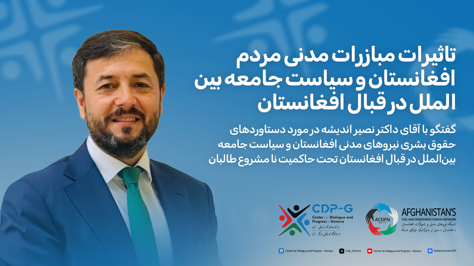 The Afghanistan Civil and Democratic Forces Network (ACDFN) is committed to working individually and collectively on implementing the conference's recommendations — including organizing dialogues, facilitating interactions among participants, and providing secretarial and convening support to the network and expert groups to feed into a national dialogue on the future of Afghanistan.